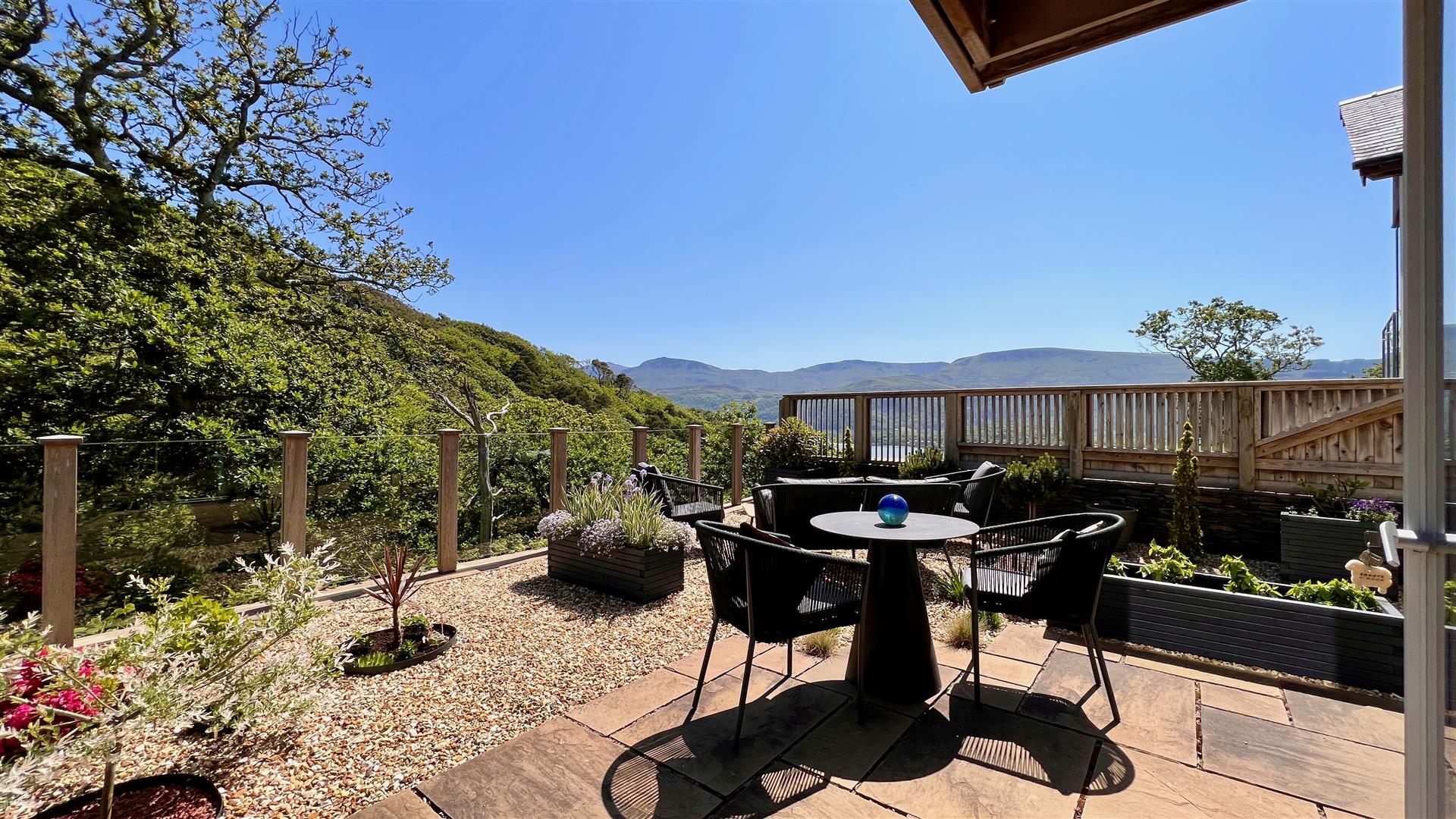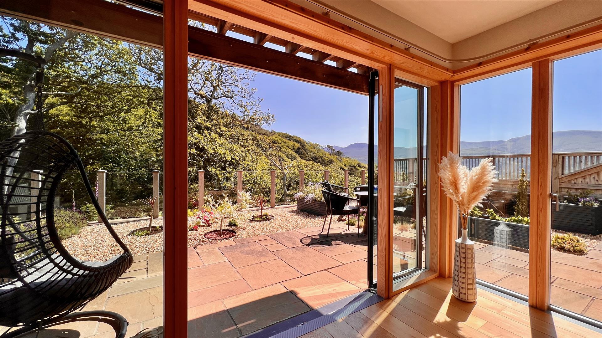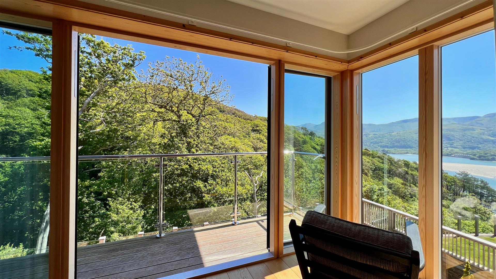 As well as having architectural flair and grace the build quality is outstanding and the prime elevated setting is glorious with a sweeping view of woodland stretching round to face the beautiful Mawddach estuary, it not only has glorious water and woodland views but also an outstanding view of Cader Idris to the rear and distant sea views to the front.