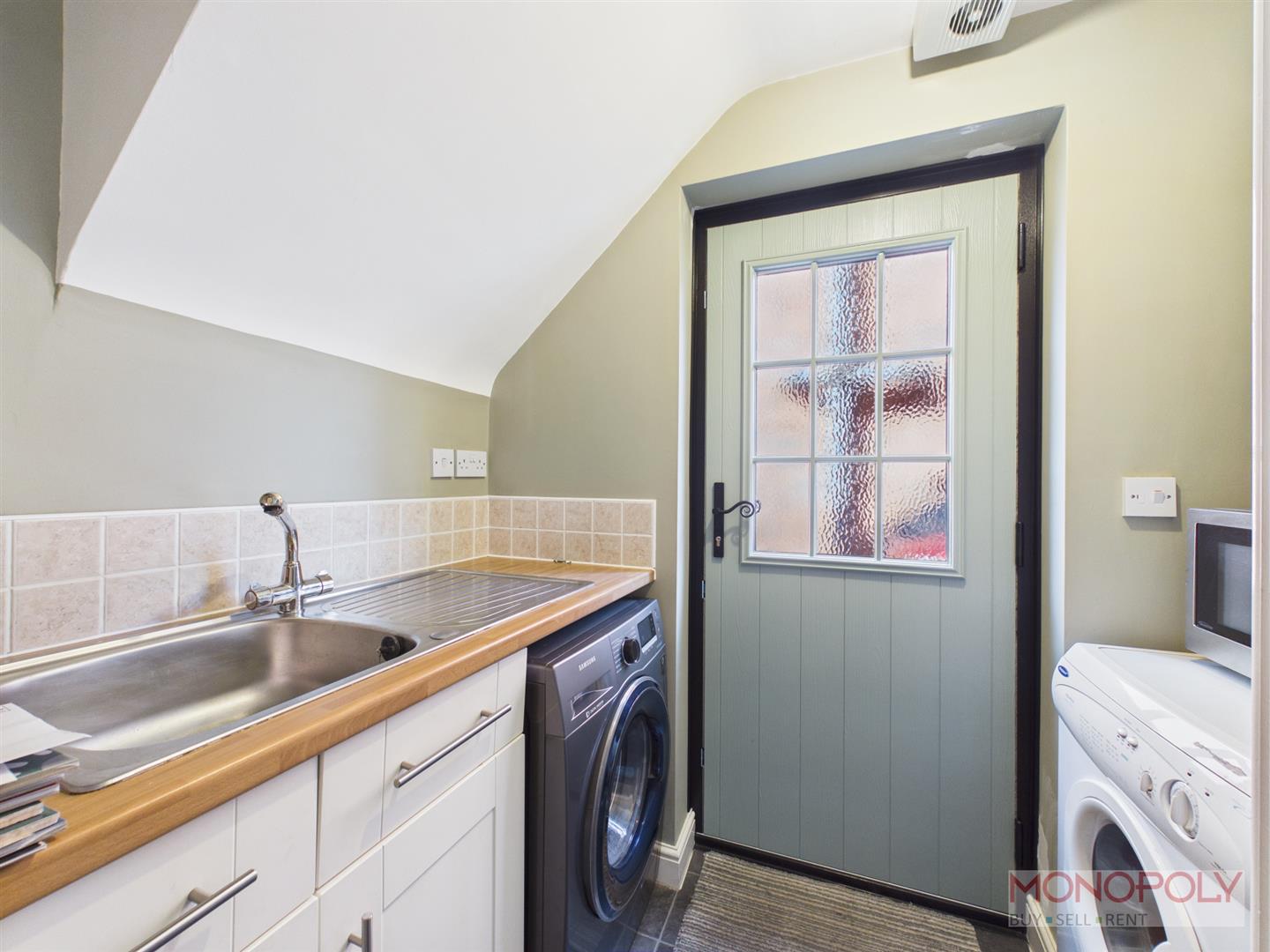 Fitted with a range of base units with work surface over incorporating a stainless steel sink unit with mixer tap. Newly fitted door to side, space and plumbing for washing machine, space for tumble dryer, wall mounted Worcester gas boiler, ceiling light point, extractor and vinyl flooring.