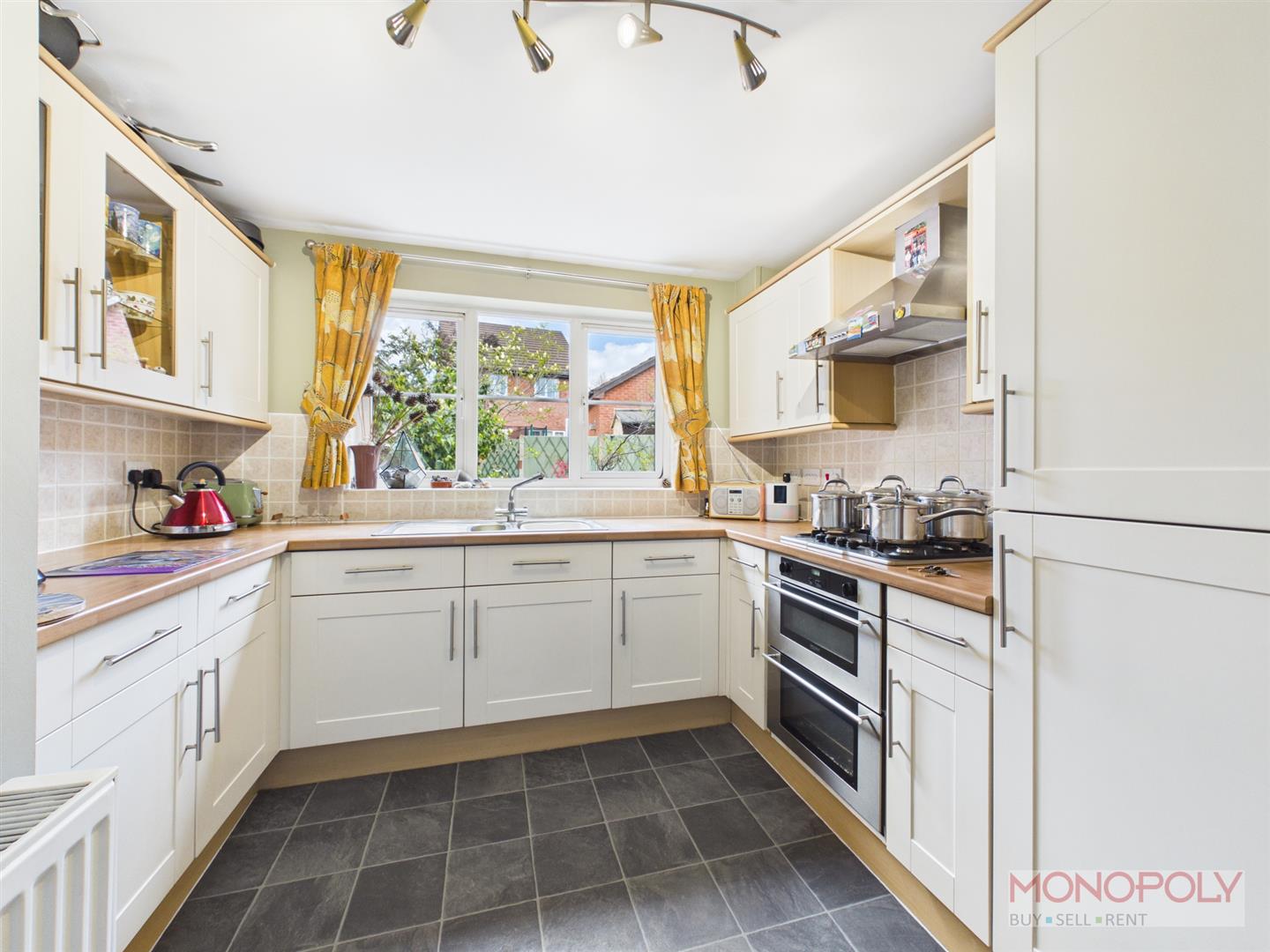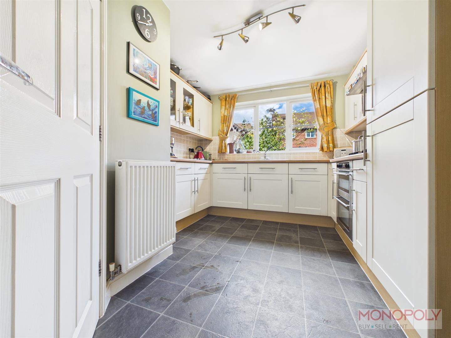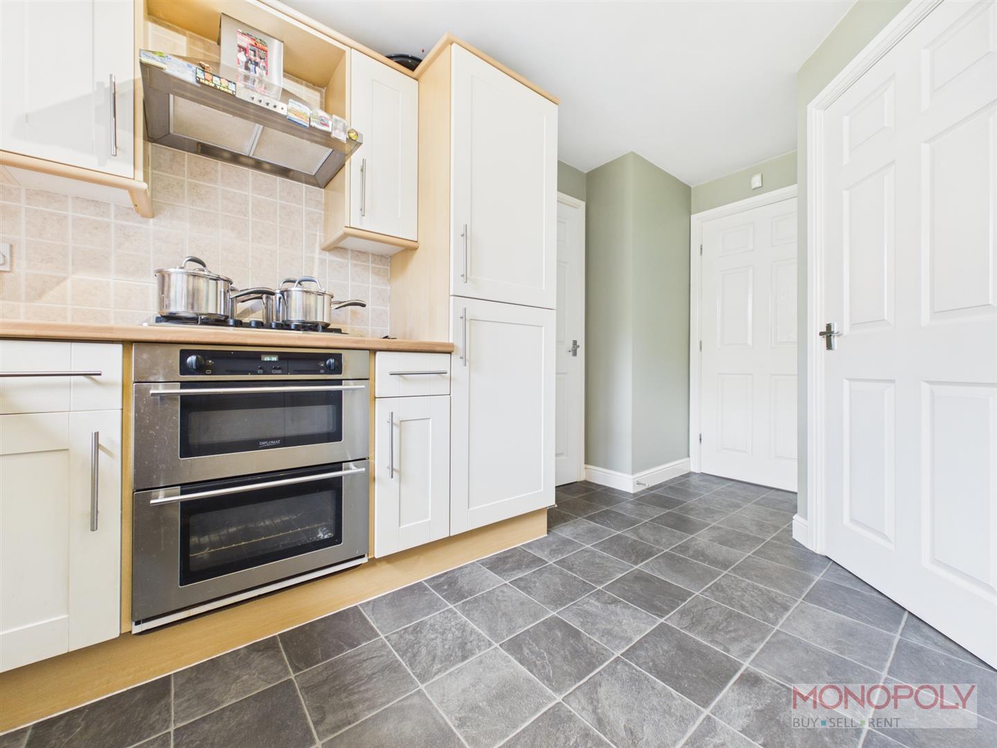 Fitted range of wall, drawer and base units with complementary worktops, incorporating a stainless sink drainer with mixer tap over.Integrated appliances to include electric double oven, gas hob, extractor, dishwasher and fridge/freezer. Vinyl tile effect floor, ceiling light point, panelled radiator and door to utility.