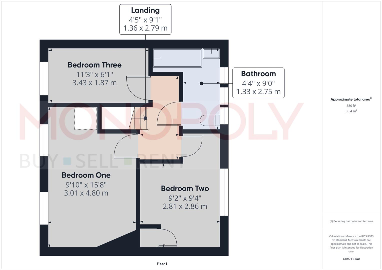 With access to the loft space, radiator, doors leading off to the bedrooms and bathroom.