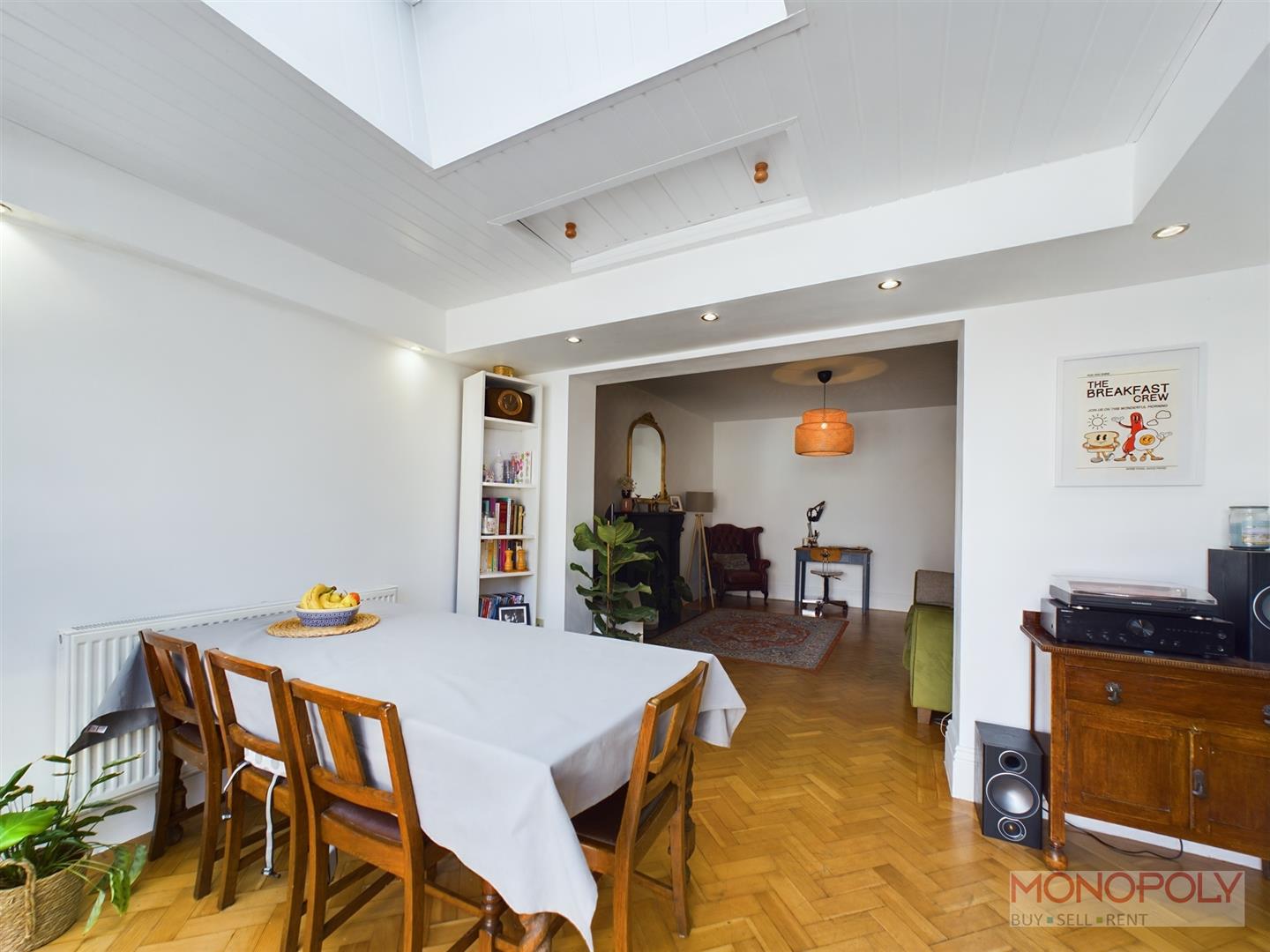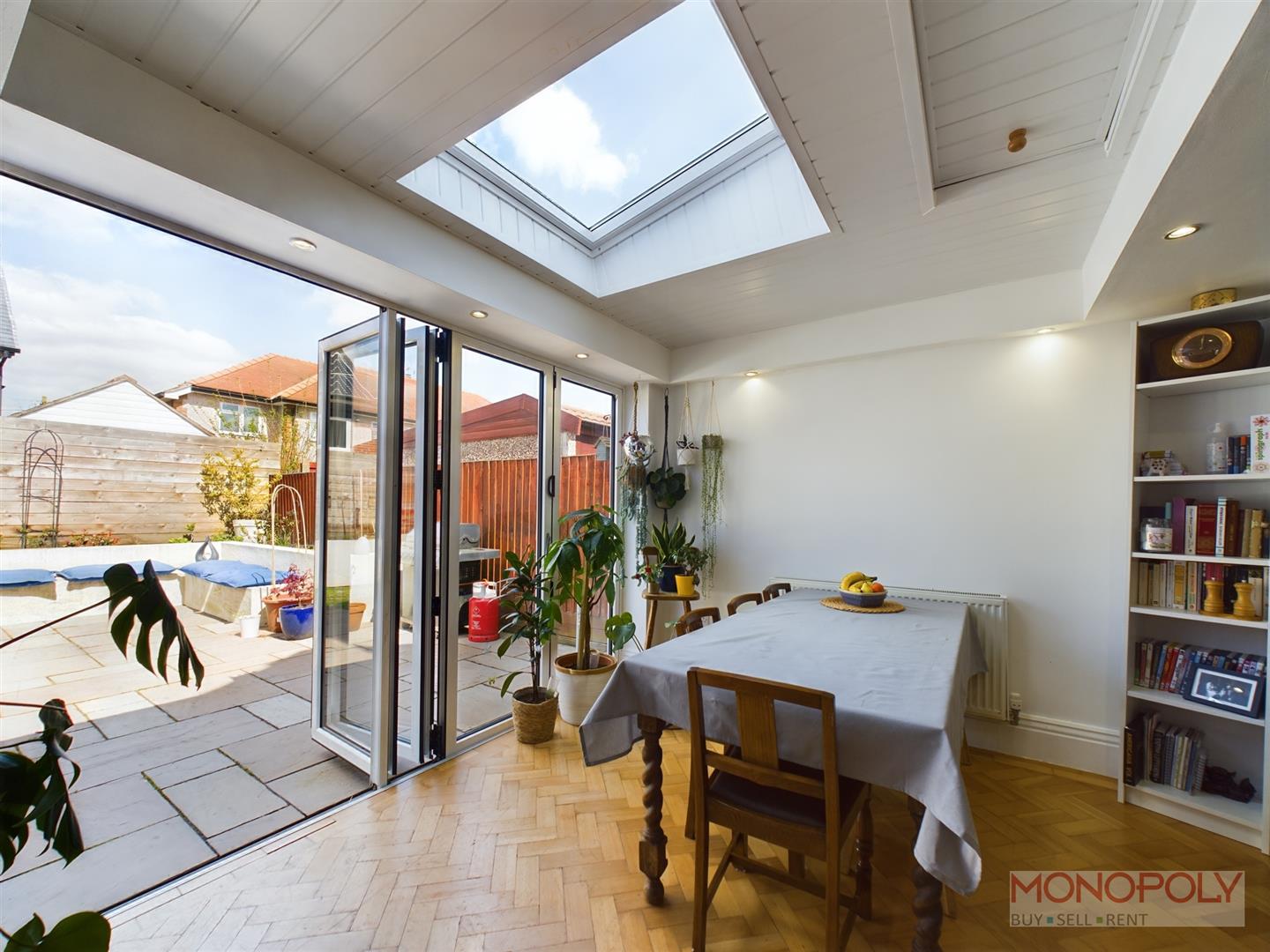 Open plan off both the lounge and kitchen with bi-fold doors off to the rear garden, large feature skylight, parquet flooring.