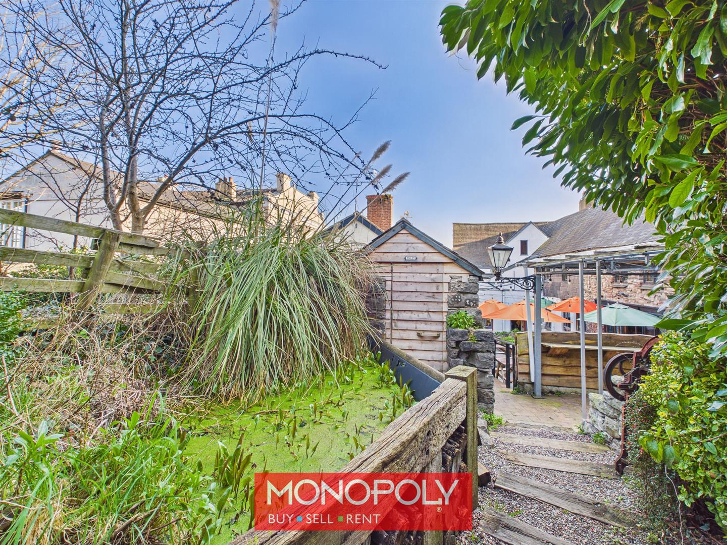A highly distinctive and versatile outdoor space, comprising a paved courtyard seating area with covered bar and entertaining space, a raised lawned garden with mature planting,two ponds, pathways and steps leading to different sections, and a further enclosed area offering excellent potential for outdoor dining, recreation or landscaping. A useful outdoor WC, tucked away within the grounds, while the combination of stone walls, original features and elevated garden areas gives the exterior a charming and characterful feel and lovely views.