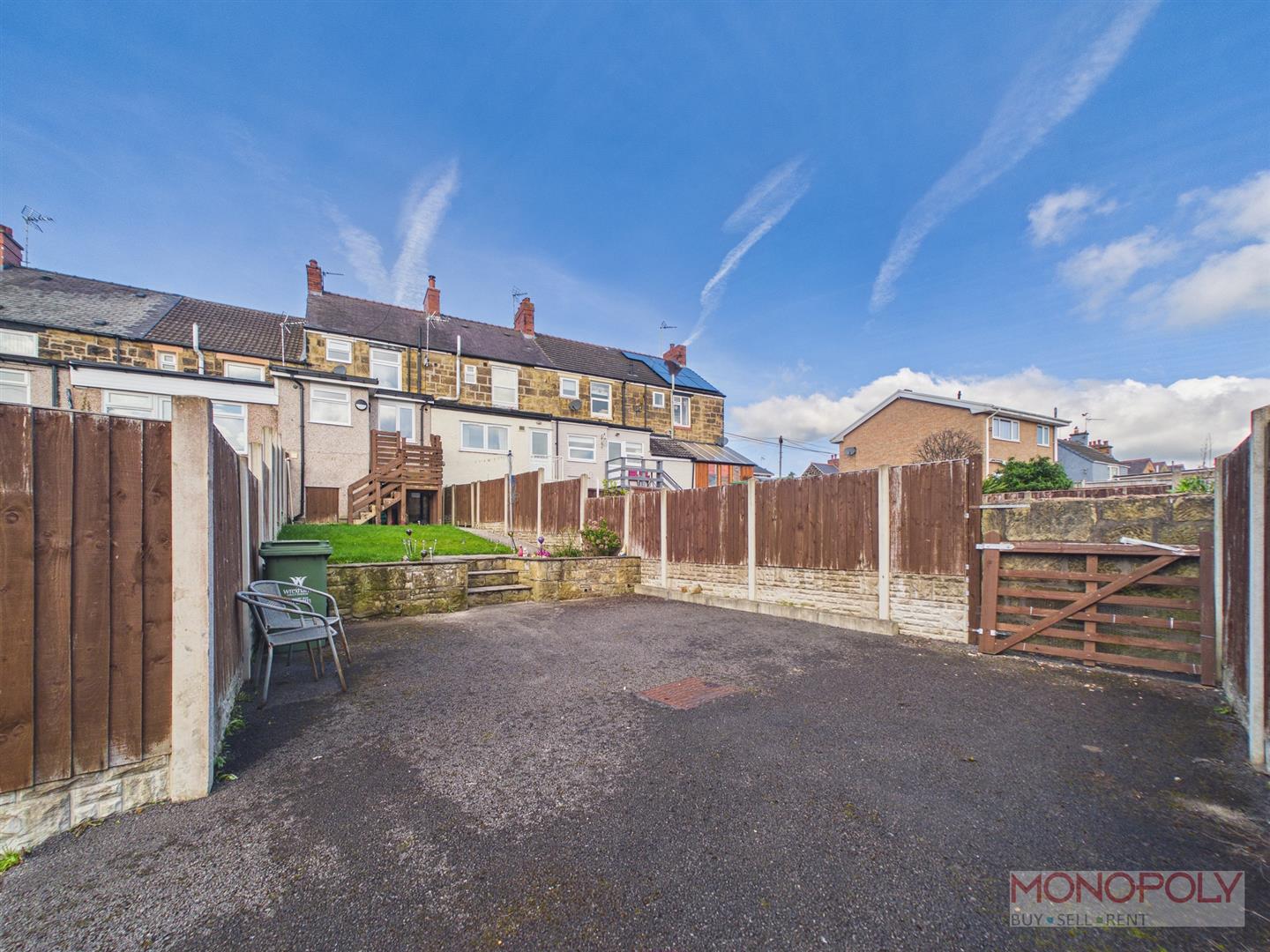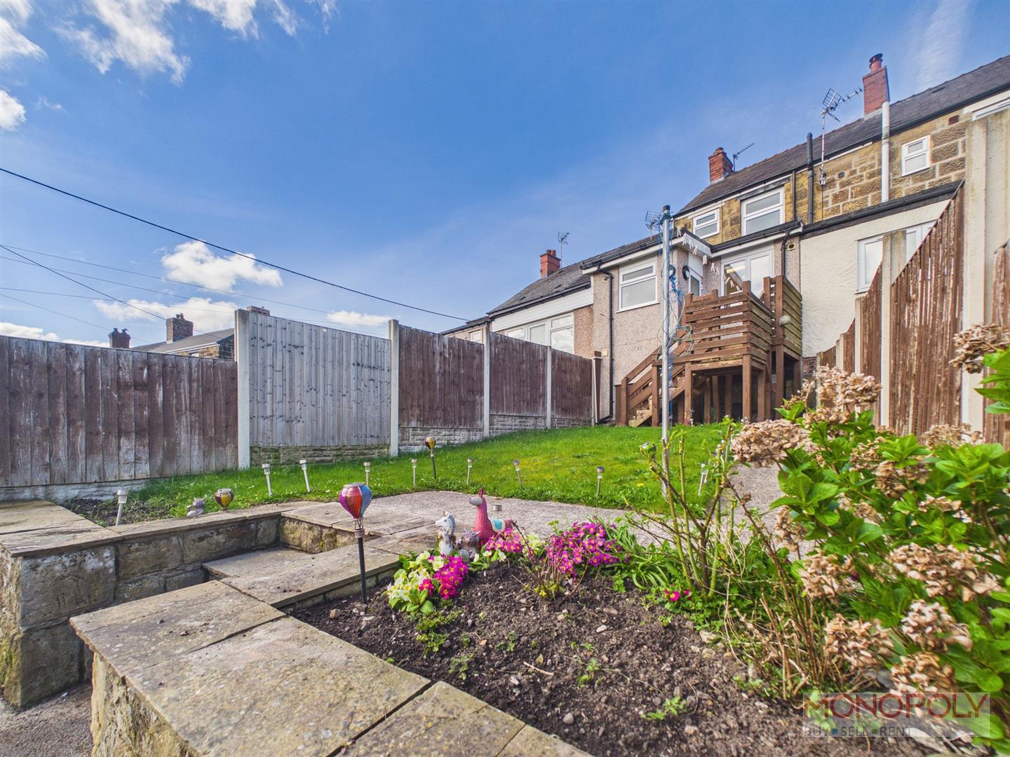 To the rear of the property is an ample garden featuring decked steps down to a lawned area with flower beds. A path leads down to further steps where there is a tarmac area featuring parking for two to three vehicles. There is a wooden gate that provides access from a shared tarmac driveway.