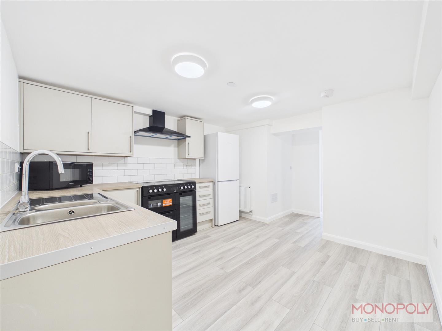 A contemporary kitchen featuring a range of wall, drawer and base units with complimentary worktop over incorporating a 1.5 stainless steel sink and drainer unit. Integrated appliances to include a dishwasher and extractor. 'BEKO' range style cooker with electric double oven and 5 ring electric hob, space for a fridge-freezer, radiator, ceiling light point and opening into the utility.