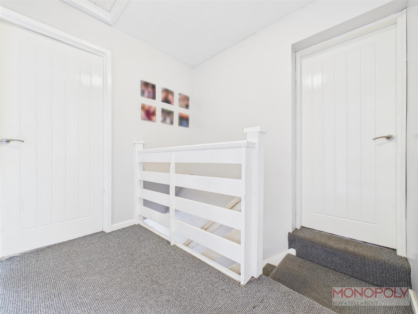 Access to loft which is part boarded and houses the combination boiler. Ceiling light point, carpet flooring and doors into bedrooms and bathroom.