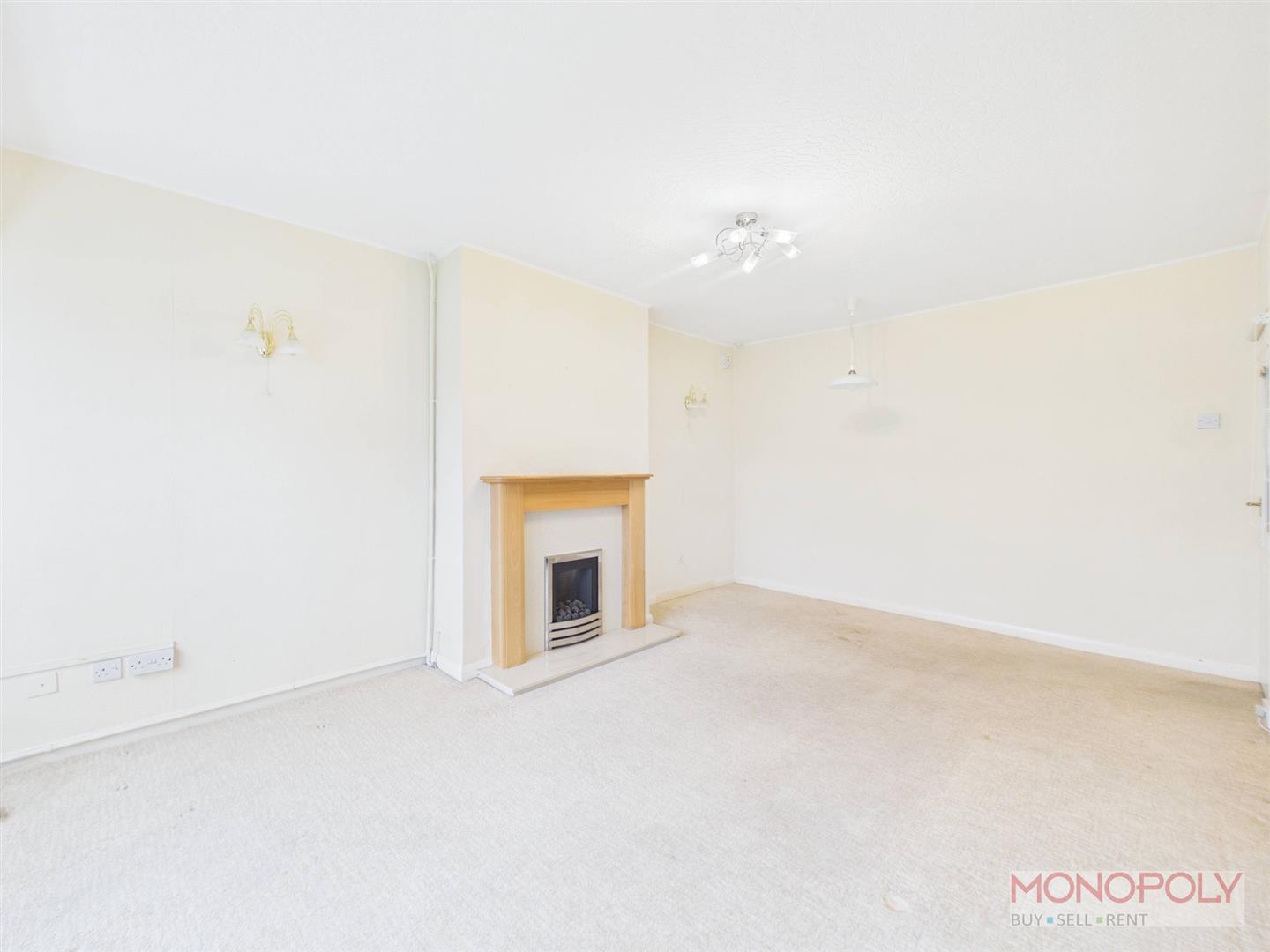 A good size lounge with a double glazed window to the front, central fireplace with inset living flame gas fire, timber surround and mantel, carpeted flooring.