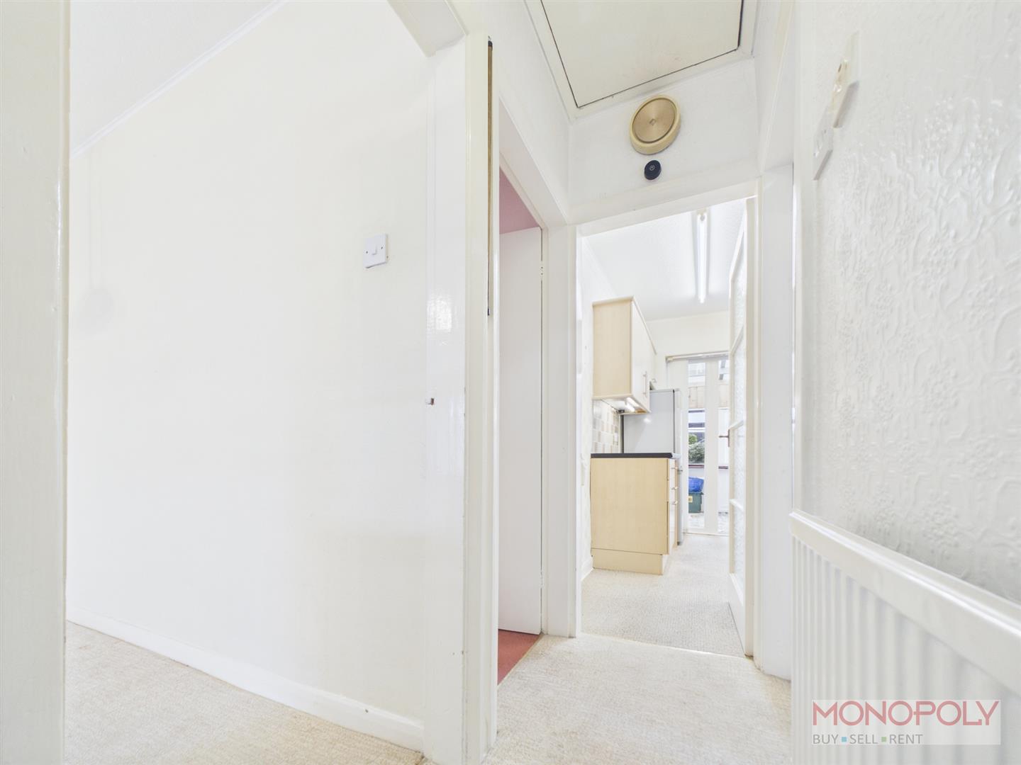 With carpeted flooring, door to a large storage cupboard, door into the lounge.