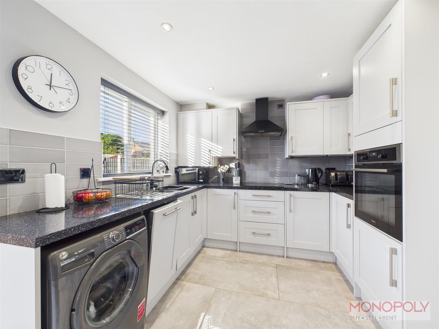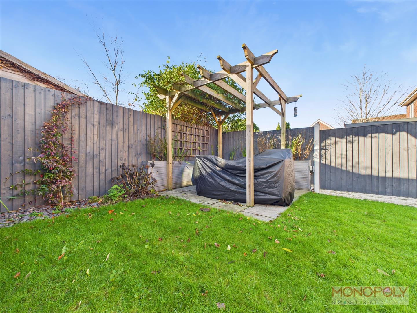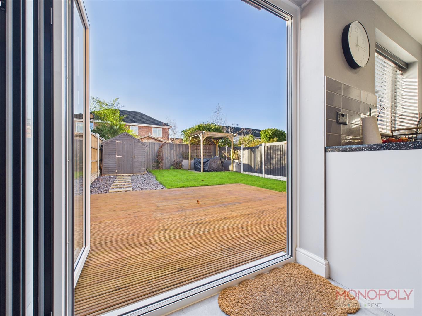The boiler has been serviced and is located in the kitchen. New bi-fold doors and new front door have been fitted recently. The blinds will be left aswell as the timber shed and pergola in garden.