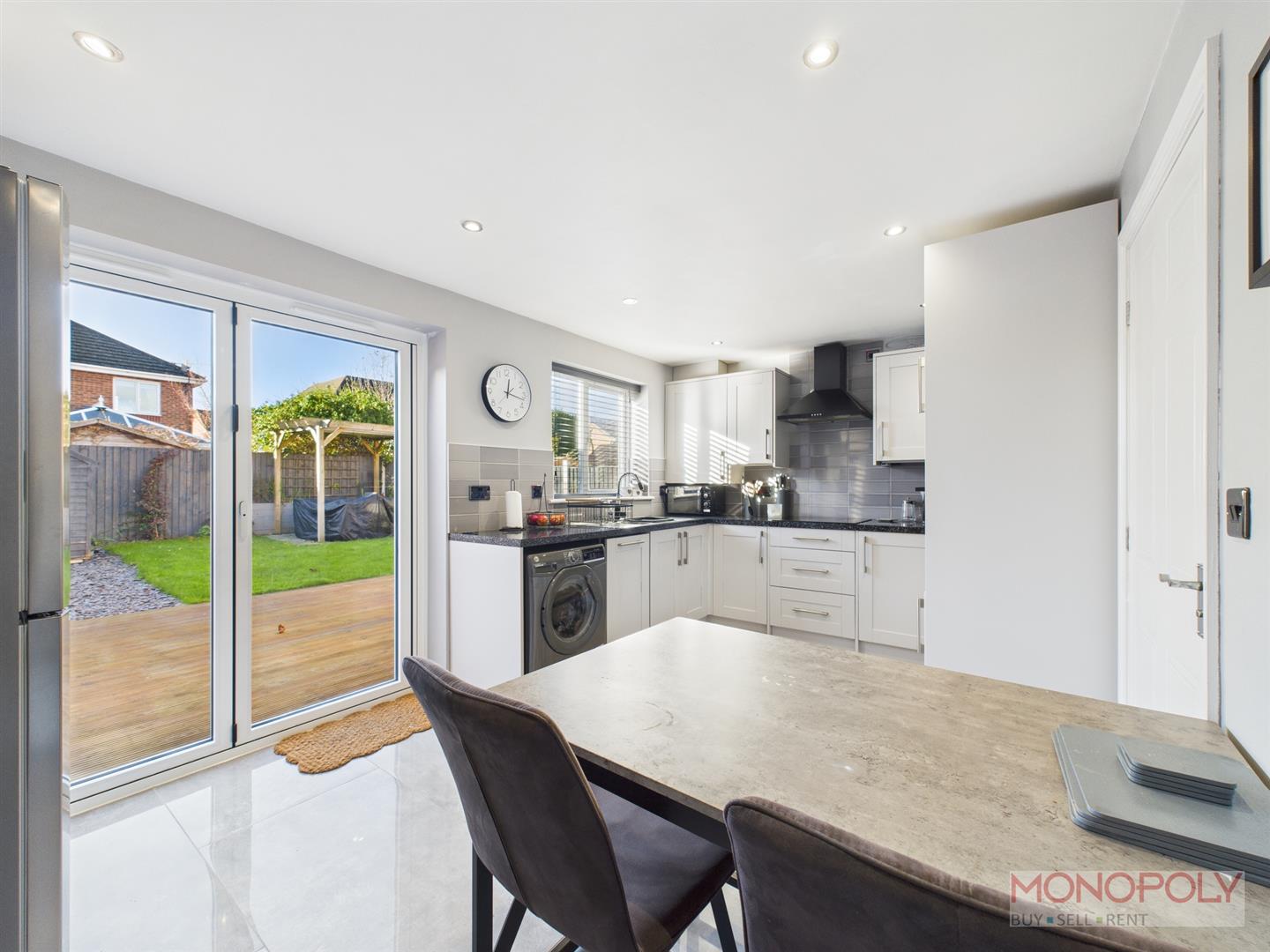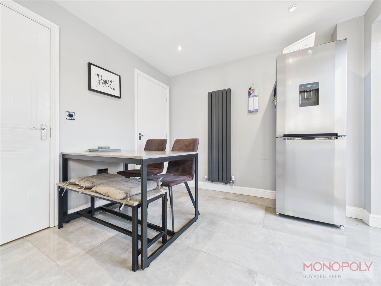 Open plan kitchen/dining area with newly fitted bi-fold doors creating that indoor/outdoor feel. The kitchen houses a range of wall, drawer and base units with complimentary work surface over. Integrated appliances to include dishwasher, eye-level oven, induction hob and extractor over. Space for washing machine and fridge-freezer. 1.5 stainless steel sink unit with adjustable mixer tap over. Tiled floor, modern vertical radiator, recessed LED lighting, under-counter lighting, under-stairs storage cupboard, uPVC double glazed window to the rear.