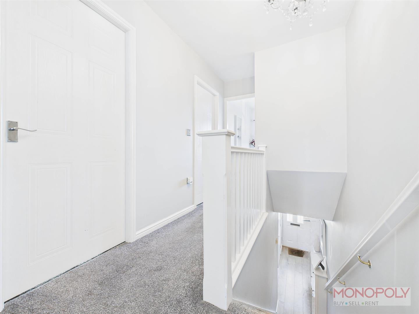 Access to loft, ceiling light point, carpet flooring, airing cupboard housing water cylinder with shelving, doors to bedrooms and bathroom.