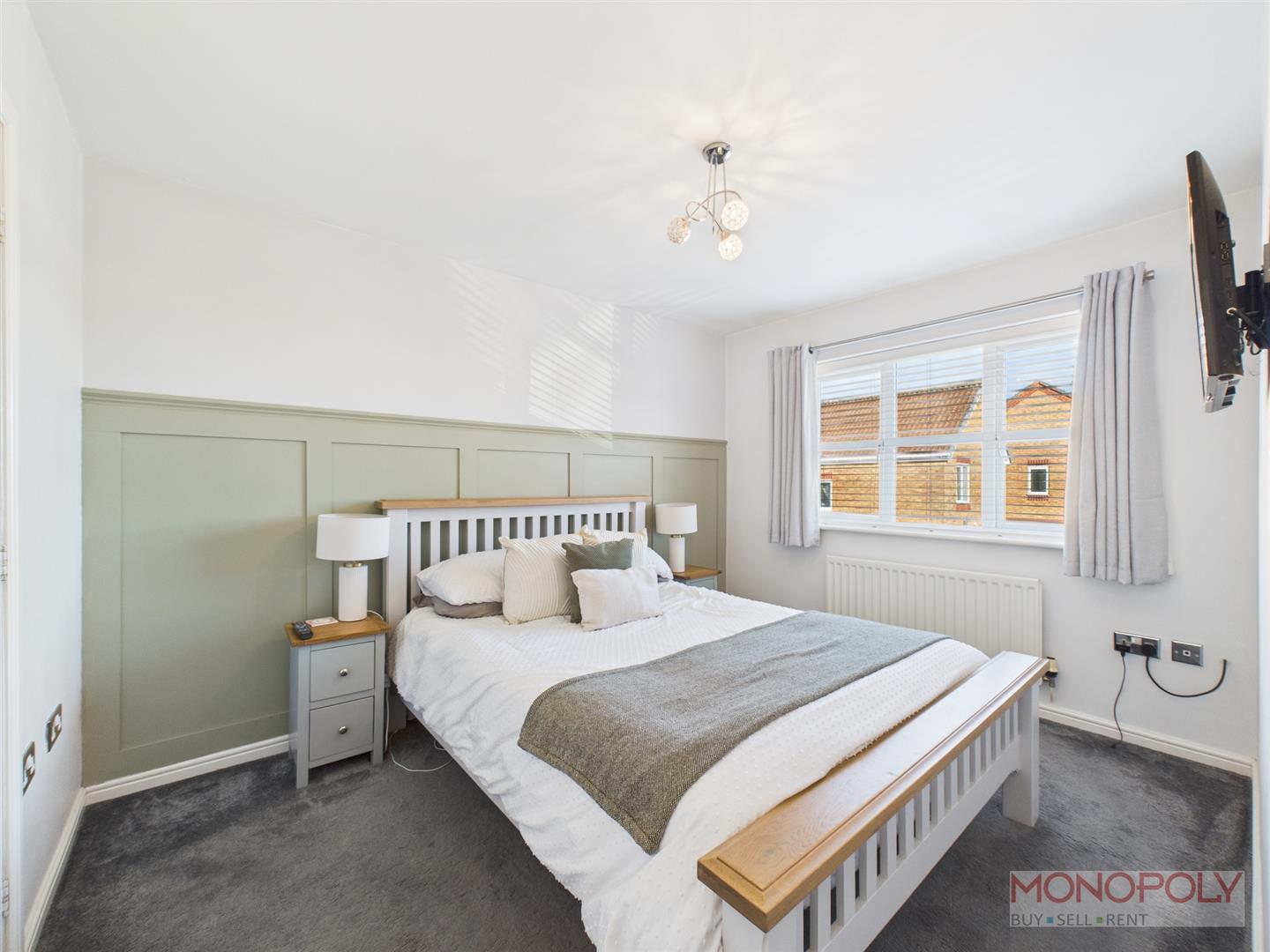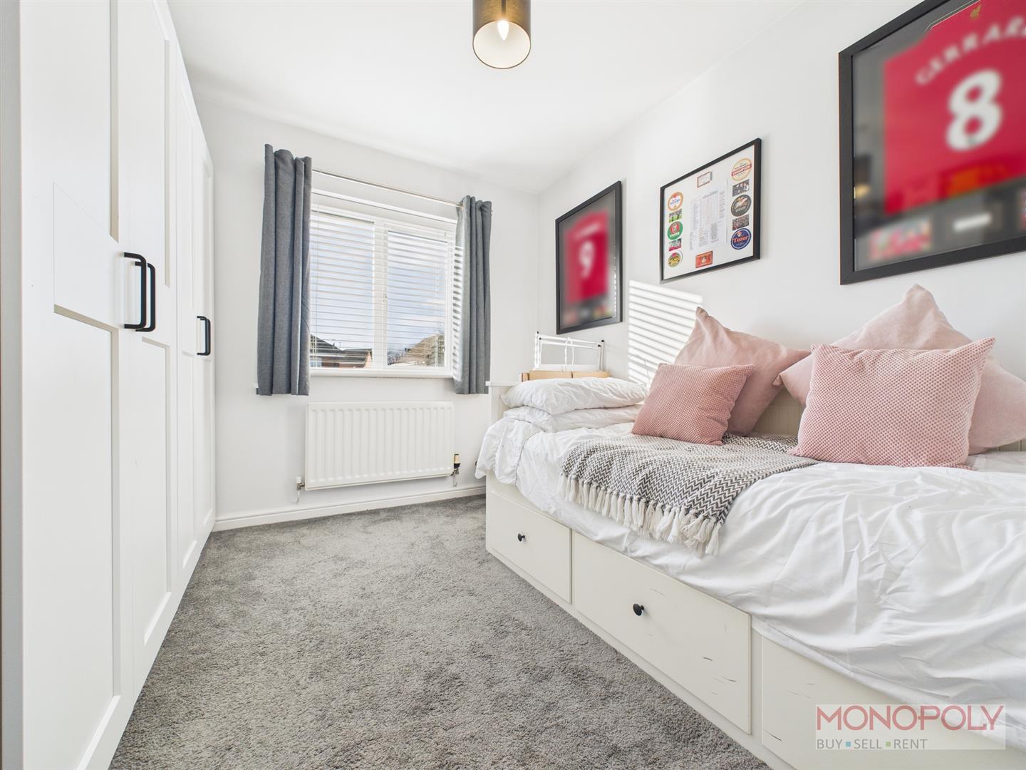 UPVC double glazed window to the front elevation with venetian blinds. Carpet flooring, ceiling light point, panelled radiator and door into en-suite.