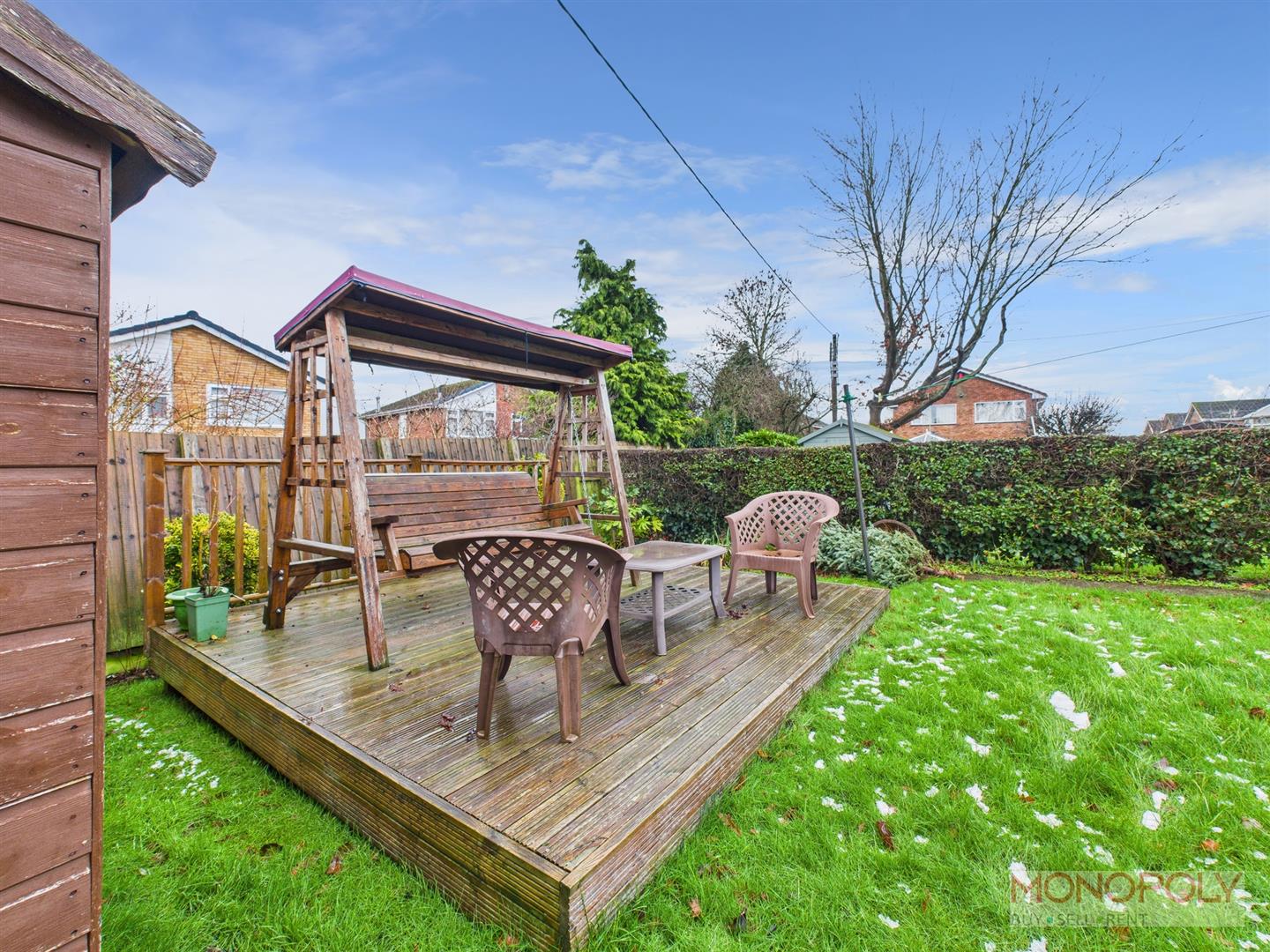 To the front there is a block paved driveway with space for two vehicles. To the rear there is a pleasant courtyard area with brick-built outside store and WC. There is tiled paving, electric sockets, outside tap, and decking. A timber gate leads to a shared pathway. The main lawned garden area is offset from the property to the left and offers a spacious lawned garden with timber built shed, established shrubberies and flowers. There is fencing and hedges to the boundaries offering security and privacy. There is a pleasant timber decked area presently used for seating.