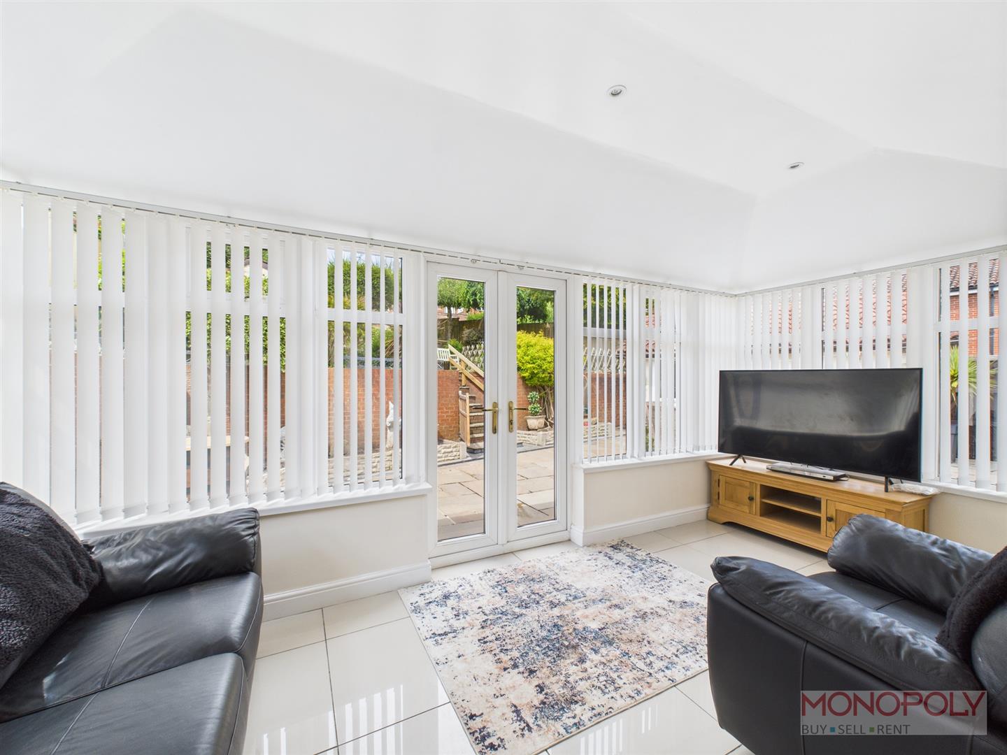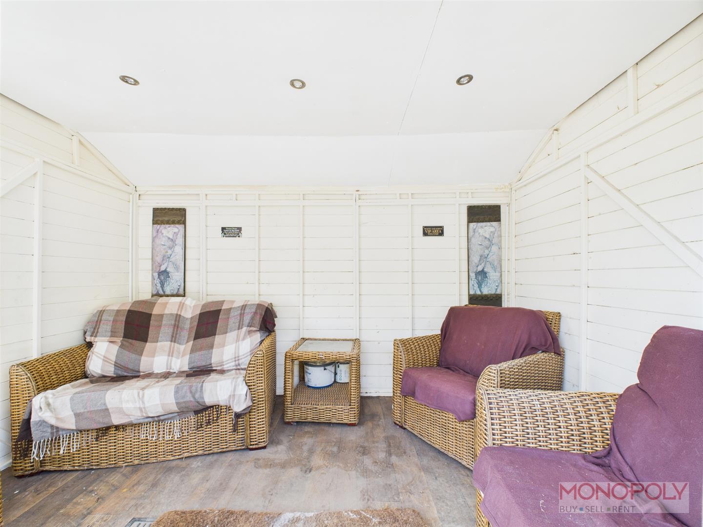 Porcelain tiled flooring, views over the rear garden, and recessed downlights in the ceiling. Cosy style roof for all year round use.
